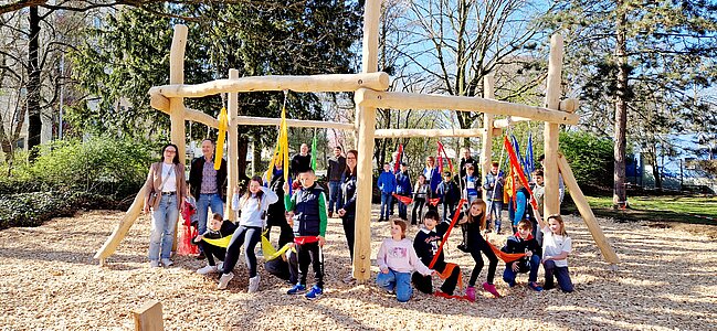 Am 28.03.2025 wurde unsere neue Schaukelanlage bei schönstem Frühlingswetter eingeweiht. Mit fröhlichem Gesang und einem bildhaften Schaukelgedicht bedankte sich die gesamte Schulgemeinschaft aus Kindern, Eltern und Lehrern bei allen eingeladenen Unterstützern des Projektes. Der langjährige Wunsch des Schülerparlaments nach einer Sechsfachschaukel konnte dank unserer sehr erfolgreichen Teilnahme an der Sparda Spendenwahl 2024 und der großzügigen finanziellen Unterstützung zahlreicher Sponsoren verwirklicht werden. Daher sagen wir „Danke!“ an das Autohaus Behrendt GmbH, die AG „Schule und Sport“ und der AG „Immobilienmanagement“ der Stadt Soest, die Bürgerstiftung Hellweg-Region, an die Firma Siedler GmbH (Riga Ring), die Sparda-Bank, die Stadtwerke Soest, die Stiftung „Kinder der Gemeinde Möhnesee, die Volksbank Hellweg eG und natürlich auch an alle Georgschulkinder und -Eltern die beim Stimmensammeln so fleißig waren.