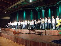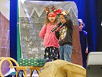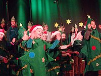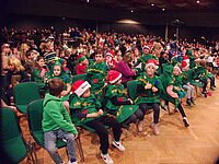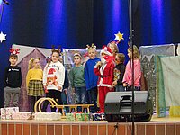Am 19. Dezember versammelte sich die gesamte Schulgemeinde, um gemeinsam mit allen SchülerInnen, Eltern und Lehrern eine große Schulweihnachtsfeier zu feiern. In der festlich geschmückten und bis auf den letzten Platz gefüllten Aula des benachbarten Conrad von Soest Gymnasiums kamen alle Klassen zusammen, um ein buntes Programm aus Liedern, Gedichten, Tänzen sowie kleinen Theaterstücken zu präsentieren. Durch das Programm führten unsere Schülersprecher Anabel und Maxim. Von ernsthaft bis fröhlich von laut bis leise waren die Auftritte gestaltet und berührten alle Zuschauer nachhaltig.