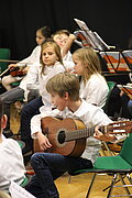 Unter dem Motto "Es tönen die Lieder" luden unsere Jeki-Kinder unter Mitwirkung der Musikschule Soest am 23.02.24 zu einem musikalischen Abend in die Aula des Conrad von Soest Gymnasiums ein. Nicht nur Frühlingslieder erklangen auf den Geigen, Celli, Gitarren und Blockflöten. Auch bekannte Melodien wie "Die Gedanken sind frei" oder "Mary had a little lamb" wurden dargeboten. Dabei konnten sich die zahlreichen Zuhörer einen Eindruck über die großen Fortschritte unserer Nachwuchsmusiker verschaffen. Untermalt wurden die Instrumentaldarbietungen durch den Gesang unseres Schulchors und der Jeki-Klassen des 2. Jahrgang, die mit ihren fröhlichen Liedern Heiterkeit im Saal verbreiteten. Wir danken den Lehrerinnen und Lehrern der Musikschule für ihren Einsatz. Es war ein wunderschöner Abend!