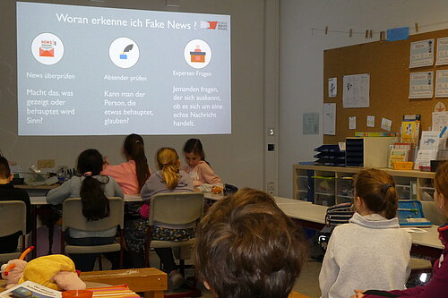 Zum Safer Internet Day im Februar besuchten zwei Teams der Medienscouts des Börde-Berufskollegs (BBK) Soest die Viertklässler*innen der Georg-Grundschule. Diese wurden einen ganzen Schultag lang in drei Workshops über die sichere Nutzung des Internets aufgeklärt. Dabei führten die Schüler*innen des Börde-Berufskollegs die Georgschüler*innen spielerisch und informativ an die Themen "Datenschutz", "Fake News" und "Cyber Mobbing" heran.